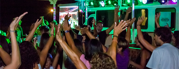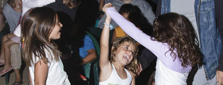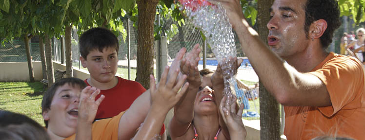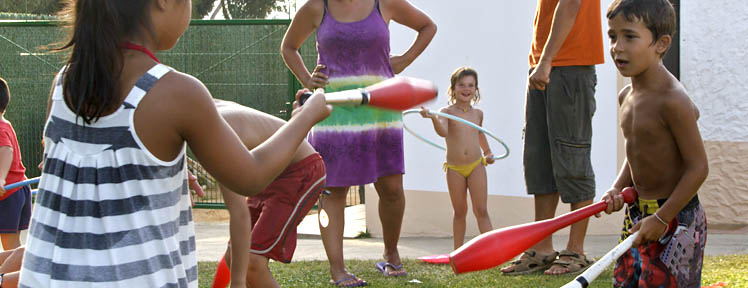 L'été, nous organisons, dans le camping, des activités pour tous les âges : jeux dans la piscine avec des gonflables géants, bals, spectacles de flamenco, ateliers cirque, bulles de savon, maquillage, percussion, etc.