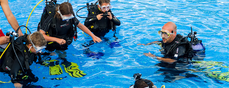 Si vous n'avez jamais fait de plongée sous-marine, vous pourrez faire votre baptême dans la piscine du camping avec des moniteurs fédérés FEDAS - FECDAS. (1h. de cours. Âge minimum : 8 ans).